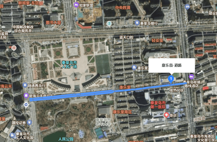 建设地点:海港区人民广场及康乐街北侧,北接建设大街,东临人民路,南侧临接康乐街,西侧为广场西路(具体位置以职能部门意见为准)。