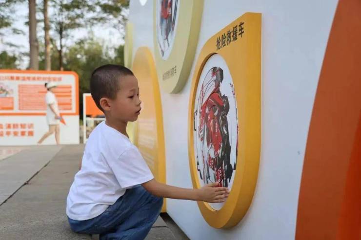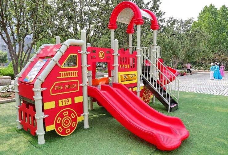 其中儿童娱乐区的消防车外形滑梯、凉亭内的模拟消防水枪受到孩子们的欢迎。