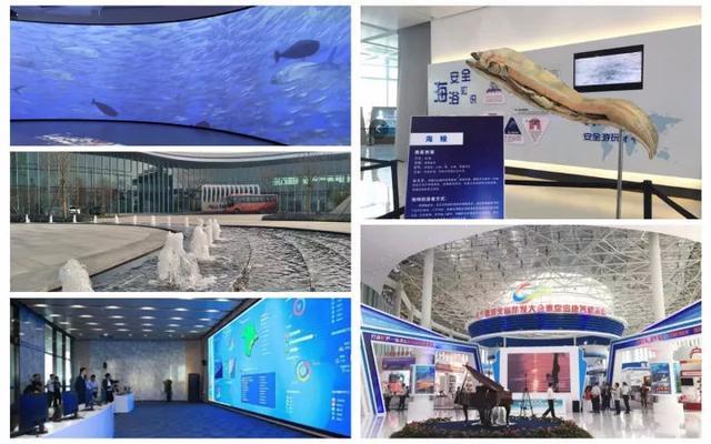 建筑共分两层,一层为公共服务区、宣传展示区和海洋展览区。展厅内深入融入了海洋科普、生态环保等理念,展示了众多的海洋生物标本及海洋生态图谱。