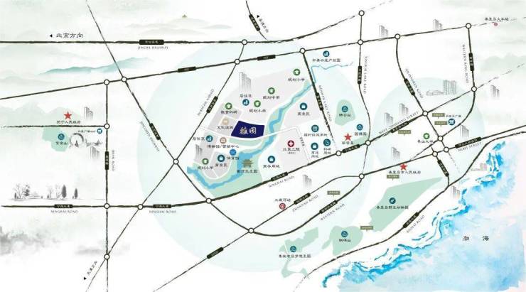 兴龙·戴河幸福小镇丨雅园置身于主城区、经济技术开发区、北戴河区的交汇点,兼得城市繁华与自然资源,周边交通畅达,横向102国道、宁海大道;纵向京沈高速、沿海高速,彼此交织联通,将丰盛繁华配套帷幄其中。
