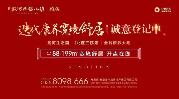 这一次,中秦兴龙在秦皇岛开发区新区连摘7宗地块,总面积约438亩,项目整体地块命名为兴龙·戴河幸福小镇,将在项目的核芯位置,打造迭新康养大盘【兴龙·戴河幸福小镇丨雅园】。