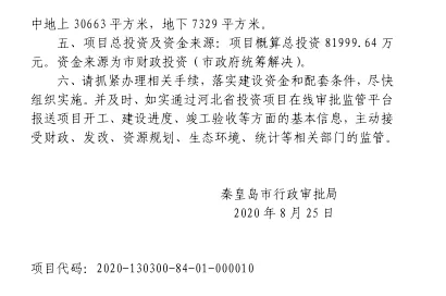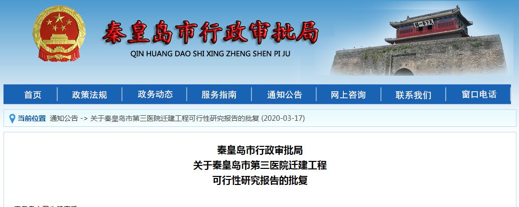 今年3月,秦皇岛市行政审批局发布了关于市第三医院迁建工程项目建议书的批复 。