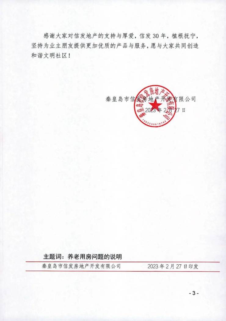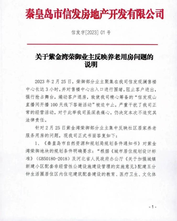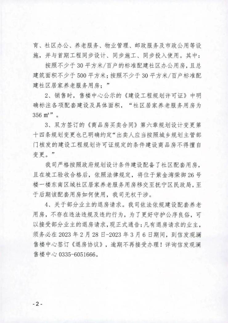 信发房地产关于紫金湾荣御业主反映养老用房问题的说明