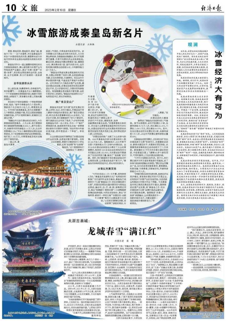 秦皇岛市作为一座以避暑休闲闻名的北方滨海旅游城市,精心谋划新兴冰雪产业与传统旅游产业融合,通过“冰雪+旅游”“冰雪+体育”,来实现全季旅游的全时段、全地域、全方位链接,努力打造国际一流旅游城市。