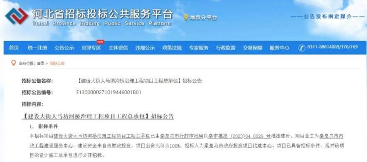 从之前河北省招标投标公共服务平台发布的消息中了解到,拟对建设大街大马坊河桥进行治理,拆除危桥后原址重建,重建桥梁全长67 米,宽度35米,桥梁上部采用3跨20米预制预应力钢筋混凝土箱梁结构,下部采用桩柱式墩台。