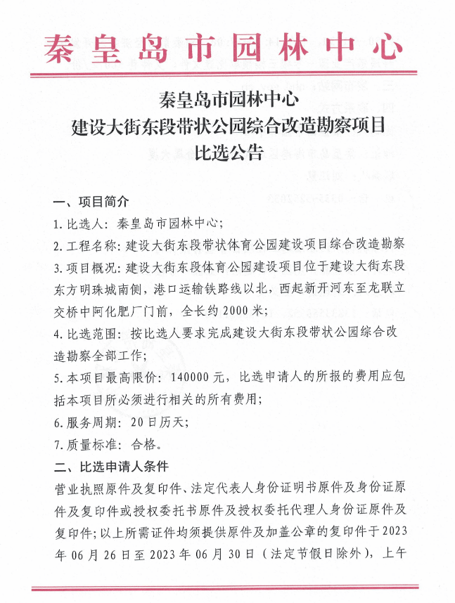 近日,秦皇岛园林中心发布“建设大街东段带状公园综合改造勘察项目必选公告”,意味着建设大街带状公园项目的进程更近一步。