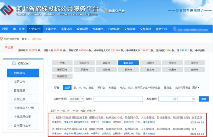 注:以上文字信息与图片来自河北省招标投标公共服务平台、秦皇岛市人民政府。