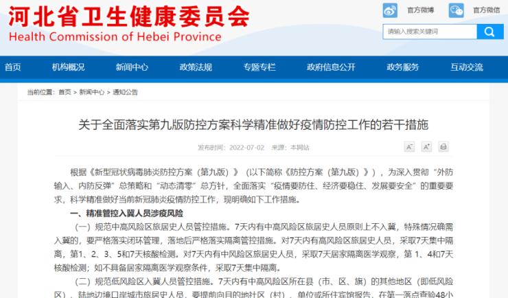 明确了!河北较新防控措施发布!无疫情,原则上不开展每周全员核酸!