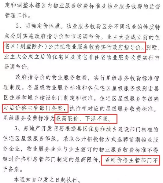 · 别墅、业主大会成立后的住宅区及其他非住宅区物业服务收费实行市场调节价。