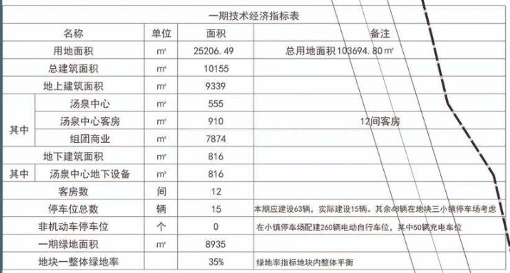 建设规模:总建筑面积10155㎡,其中,地上建筑面积9339㎡(包含4#汤泉中心 555㎡,5#至14#汤泉中心客房910㎡,15#至22#组团商业7874㎡);地下建筑面积816㎡(包含汤泉中心地下设备用房816㎡)。