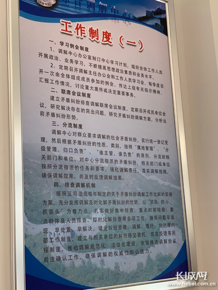 秦皇岛市大调解体系下街道综合调解中心工作制度。长城网·冀云客户端记者 李琦 摄