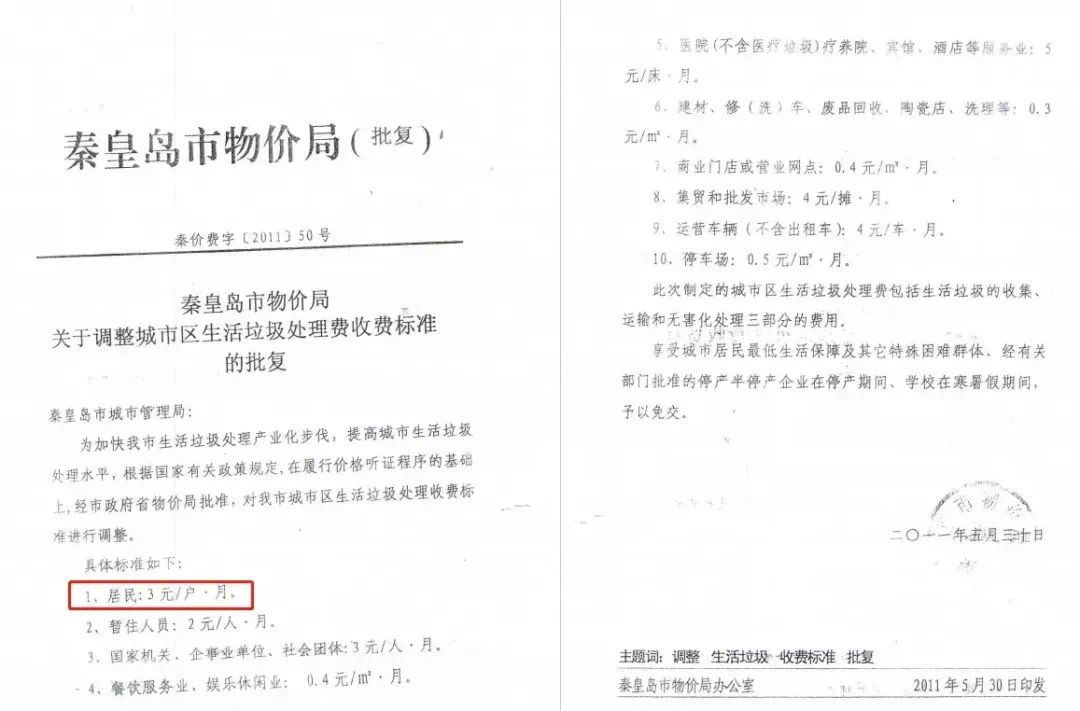 秦皇岛生活垃圾处理费标准公布