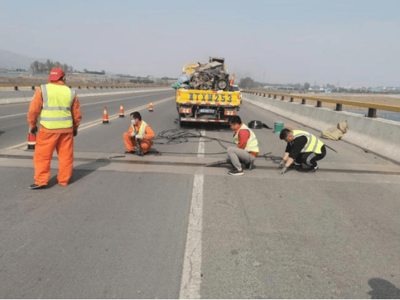 针对G102国道石河大桥桥梁伸缩缝橡胶止水带不同程度老化、脱落、破损的现状,组织桥梁维修专业技术人员对伸缩缝橡胶止水带进行更换,清理缝内垃圾杂物。施工过程中,为减少给正常交通带来的影响,采取逐车道封闭的方式开展施工,工作人员全程现场紧盯,严把施工质量安全关,严格落实文明、安全施工要求,设置警示标牌、温馨提示牌等,确保施工安全,累计更换橡胶止水带162米,保障了桥梁运行安全。