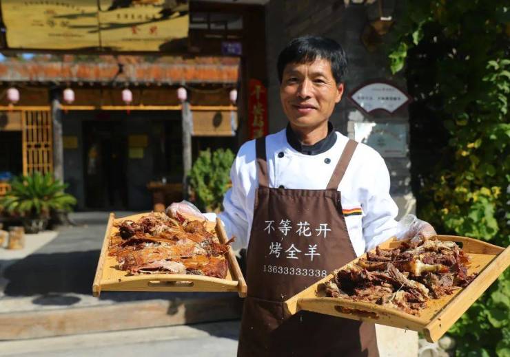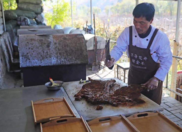 董家口不等花开农家乐内,这是拍摄的商户展示烤全羊。曹建雄 摄