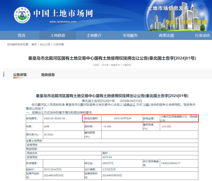 楼面价14685元/㎡,金龙地产摘牌北戴河地块!