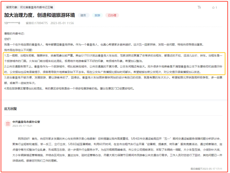 今年“五一”期间,秦皇岛市出租车行业投诉举报数量较多,市交运局从快从严处理,依法依规对查证属实的违法违规司机进行了处罚,50多台违规车辆被查。