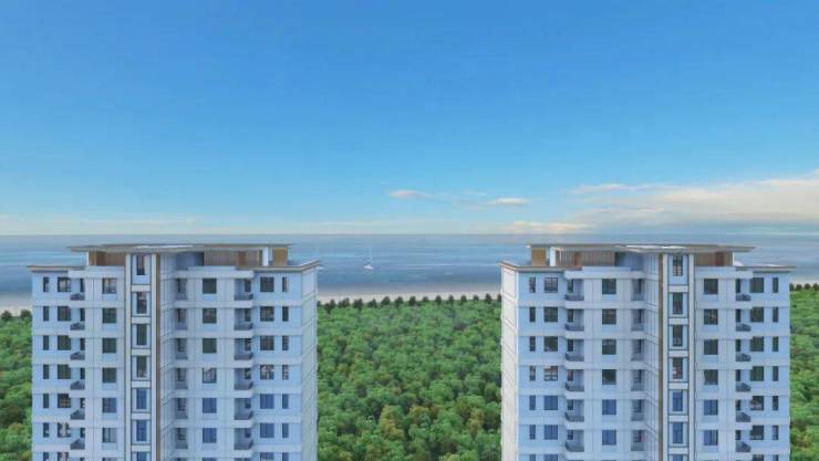 “两轴”即海风轴、森氧轴,是指“楼王”两侧的游园廊道。西侧的海风轴由一条蜿蜒水系贯穿其中,形断意连,同时周边布满植被,漫步其中徐徐微风穿林而过,怡然自得;