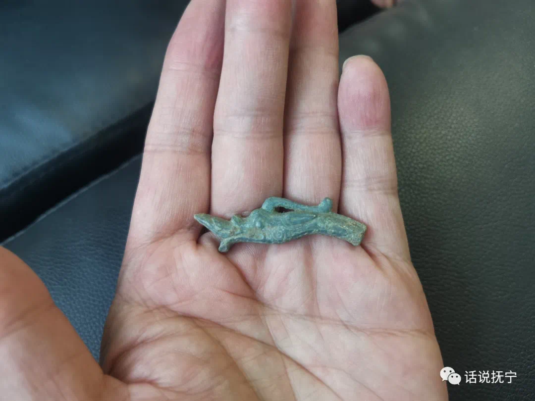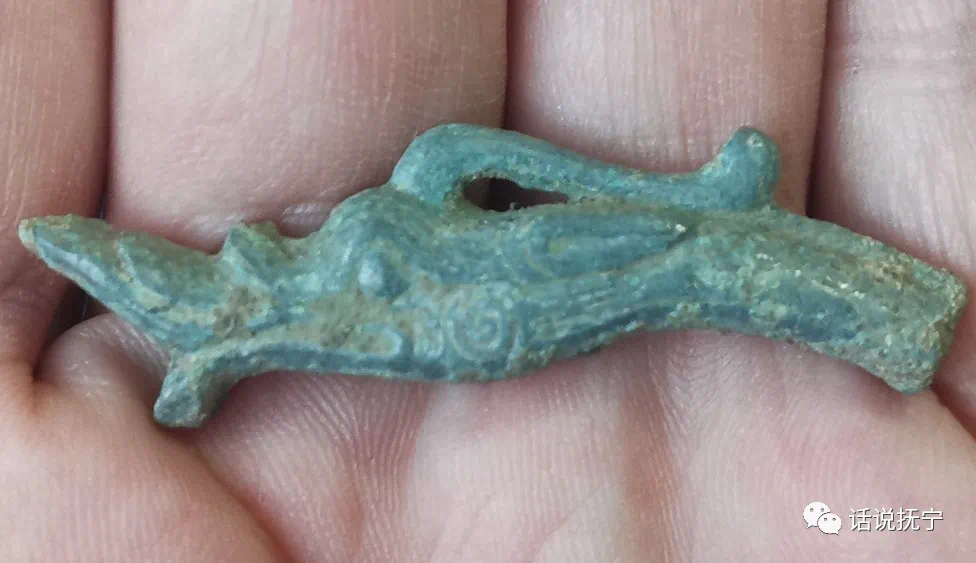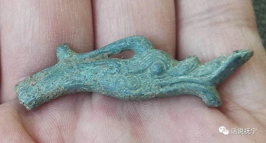 2021年11月9日下午,一件长5厘米、高1.5厘米、厚0.7厘米汉代青铜“龙首”残件在抚宁区西大街台地上出土。“龙首”残件有龙角,似牛角细长,前端略带弧形。上下唇较长,分别向上下翻张。背部有鳍线,额下有卷云,眉上有发线,做工精美。