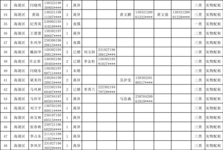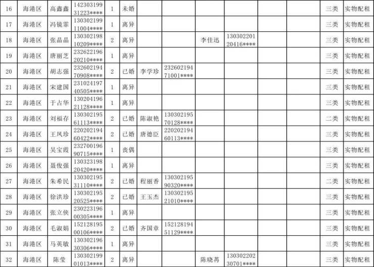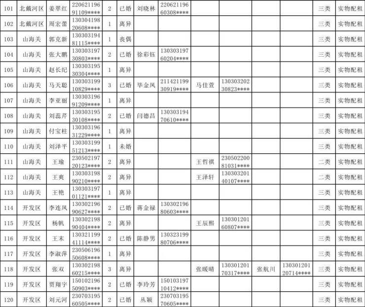 根据秦皇岛市人民政府《秦皇岛市城市区公共租赁住房申请条件》(秦政办字【2020】6号)的有关规定,我中心对海港区申请的99户、开发区申请的7户、山海关区申请的11户、北戴河区3户;共计120户公共租赁住房申请家庭进行了资格复核。现将复核合格人员名单予以公示(名单见附件),敬请社会各界监督。