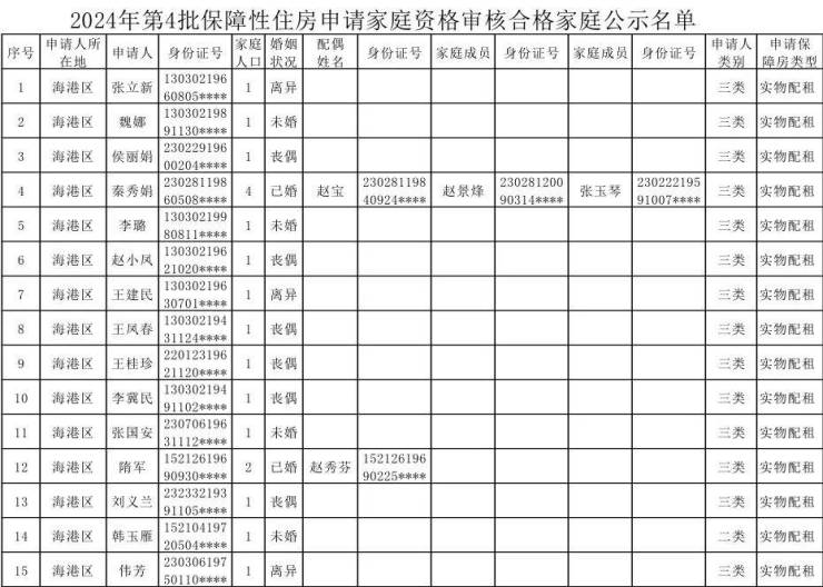附件:2024年第4批保障性住房申请家庭资格审核合格家庭公示名单