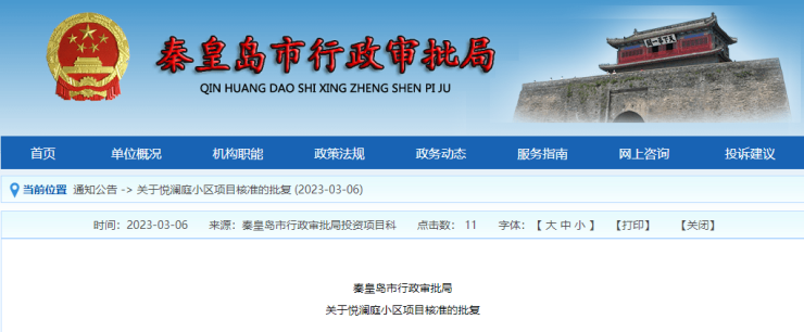 一、同意建设悦澜庭小区项目。建设单位为秦皇岛桓秦房地产开发有限公司。