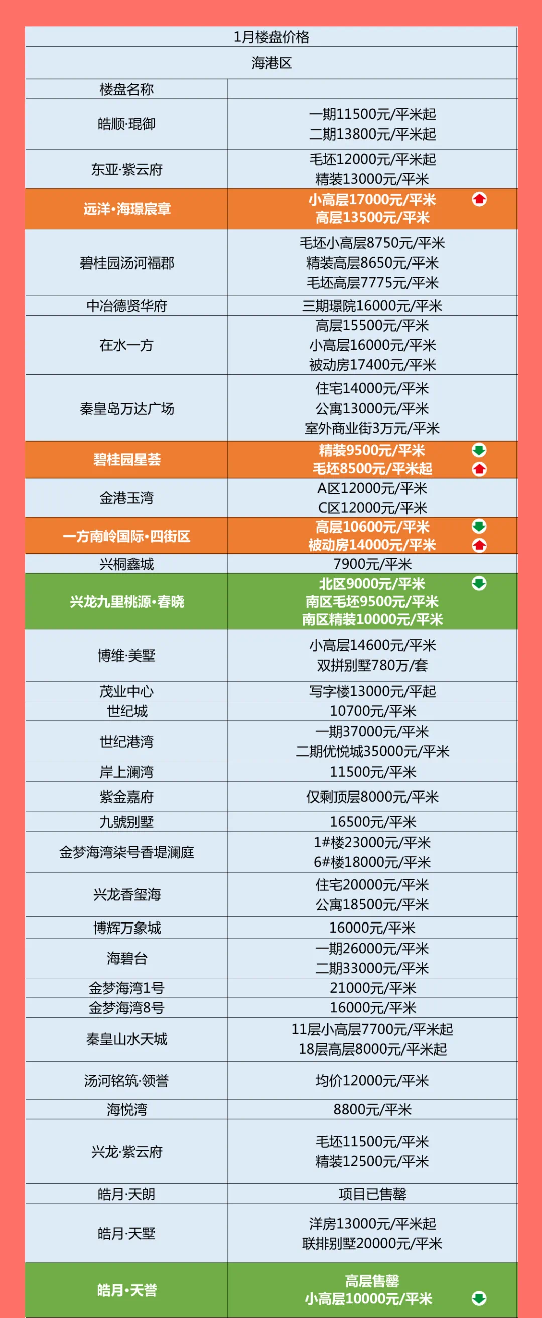 秦皇岛上百个楼盘较新价格公布!新年房价回稳!