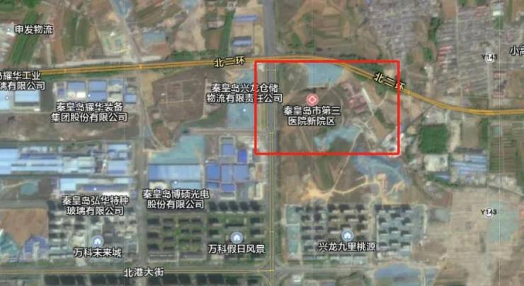 秦皇岛市第三医院新院区位于民族北路与北二环路交叉口的东南侧。