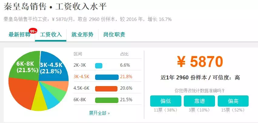 秦皇岛各行业的平均工资…