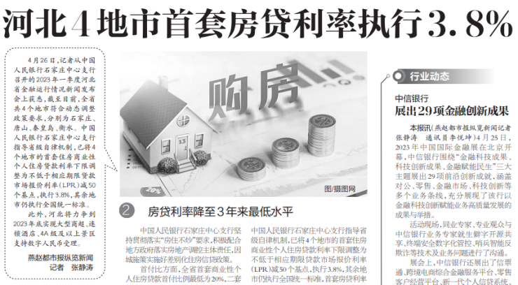 4月26日,中国人民银行石家庄中心支行召开的2023年一季度河北省金融运行情况新闻发布,据当时发布的信息,全省共4个地市符合动态调整政策要求,分别为石家庄、 唐山、秦皇岛、衡水。