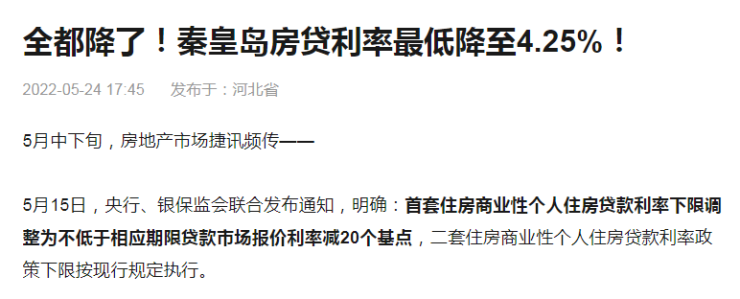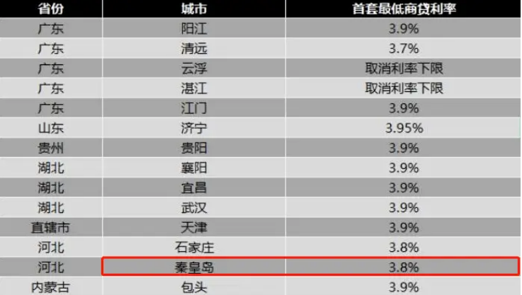根据当时政策,秦皇岛首套房最低房贷利率可降至3.8%。