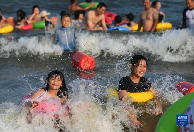 近日,大批游客来到河北省秦皇岛市休闲避暑。据介绍,今年7月份该市共接待游客1244.19万人次,同比2022年增长229.16%。