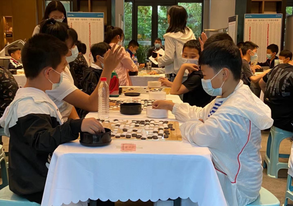 比赛现场,空气中充斥着紧张安静的氛围,少儿棋手们与对手互拼棋艺,一颗颗黑白棋子在小棋手的手上如同精灵一般,牵引着比赛的进程。小棋手们各个沉着稳定,或凝神沉思,顺势谋局,或专心致志,轻松落子,举手投足间展现出“高手”的气质风范。