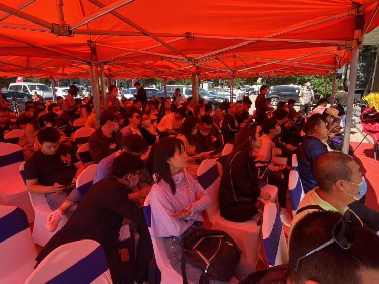 距离开盘还有一个小时,数百人齐聚星光御府营销中心,有序进行签到及落座。本次开盘采用线上开盘系统,是网速和手速的比拼,在场以及不在场的客户都能通过手机实时、精准的选择自己心仪的房源。