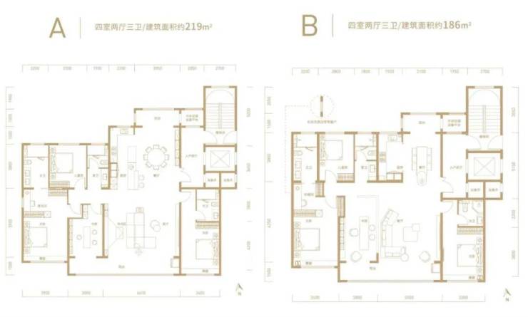 以中冶·玉带湾南院洋房产品为例,建面约186㎡、219㎡的宽境洋房产品,方正通透、四开间朝阳,南向面宽甚至可以达到17米,诠释真正的城芯宽宅典范。