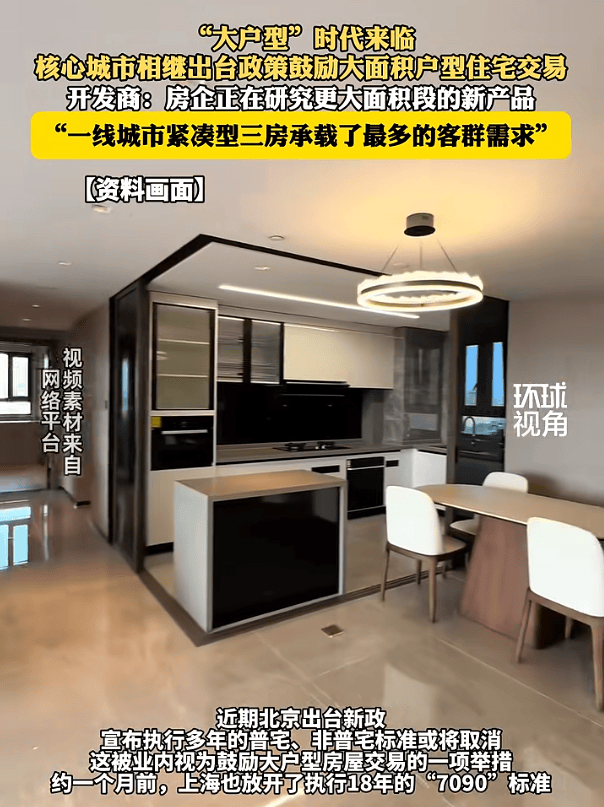 从去年开始,多座城市放开大户型住宅限购,随即大户型房产交易激增,改善型三房产品供应跃升成为新房市场主力。