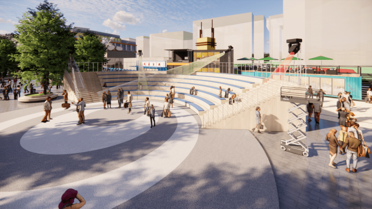 走进石塘路历史文化街区升级改造项目现场,首先映入眼帘的是已经进入施工收尾阶段的火车文化广场。