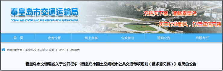 近日,秦皇岛交通运输局发布关于公开征求《秦皇岛市国土空间城市公共交通专项规划(征求意见稿)》意见的公告。