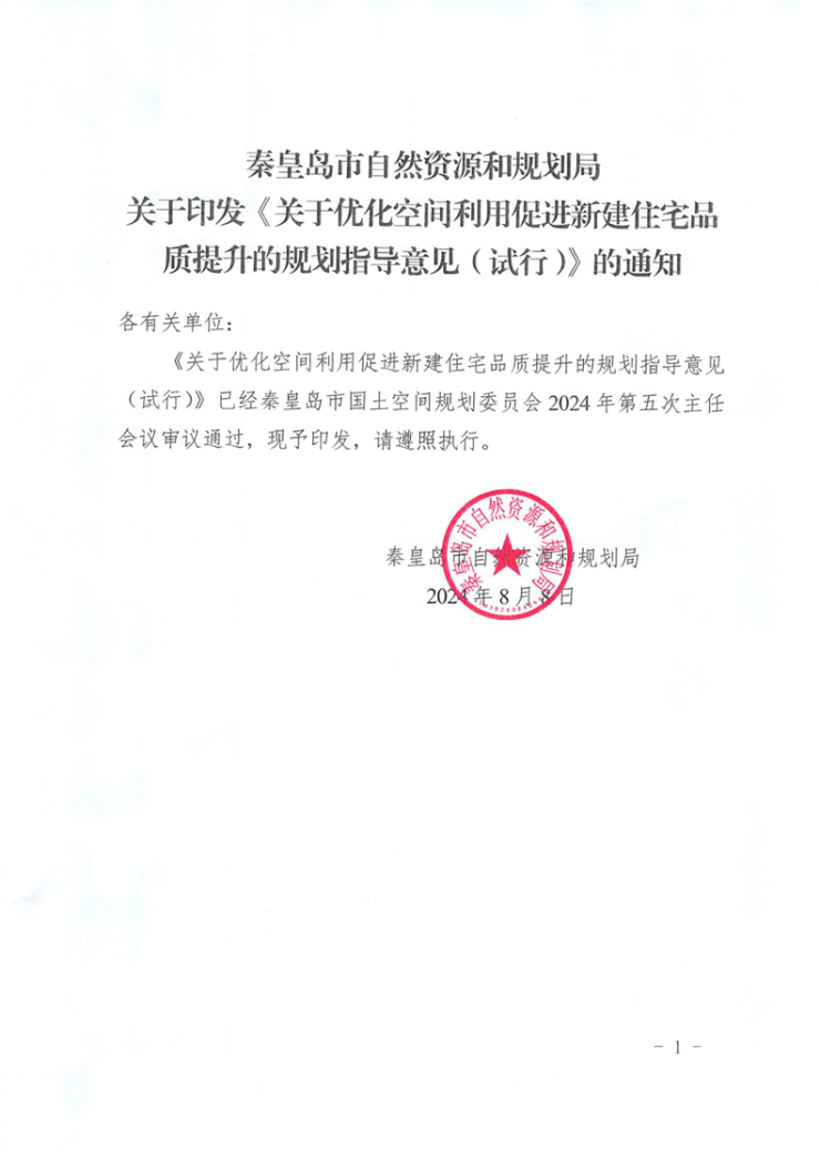 今天上午,秦皇岛市自然资源和规划局重磅发布《关于优化空间利用促进新建住宅品质提升的规划指导意见(试行)》。