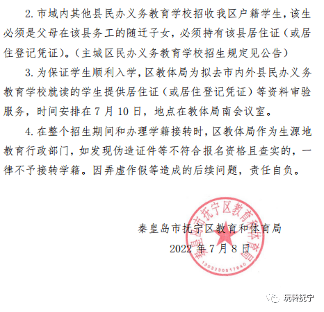 为防止学生盲目报名,按照秦皇岛市教育局2022年民办义务教育学校招生工作要求和《秦皇岛市抚宁区 2022 年民办义务教育学校招生公告》(以下简称公告,已在抚宁政府网公示),提示四点: