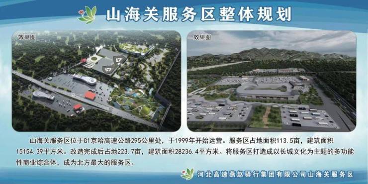 据了解,山海关服务区改扩建项目规划占地约508.35亩,计划结合当地丰富的旅游资源和长城国家文化公园区位优势,按照“构建于服务区,超脱出服务区”的建设理念,以山海关长城为文化主线,以高速公路交通商业为内核,不断丰富服务功能,精心打造“长城脚下·山海关第一会客厅”。