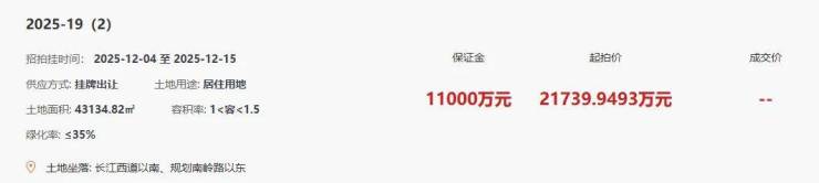 2024年12月18日,兴桐地产挥金3.5亿元连入新兴里片区2024-20,2024-21两宗商住地块(兴桐·云禧峯璟、兴桐·天汇所在地块),成交楼面价4300元/㎡。