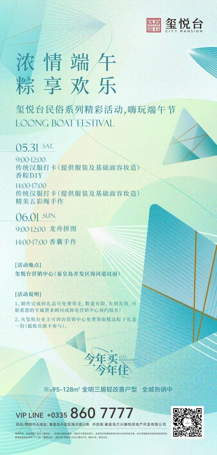活动礼品数量有限,先到先得,可联系专属置业顾问或致电营销中心预约报名。玺悦台业主可免费领取精品粽子礼盒一份(抵账房源不参与),共享端午甜蜜!