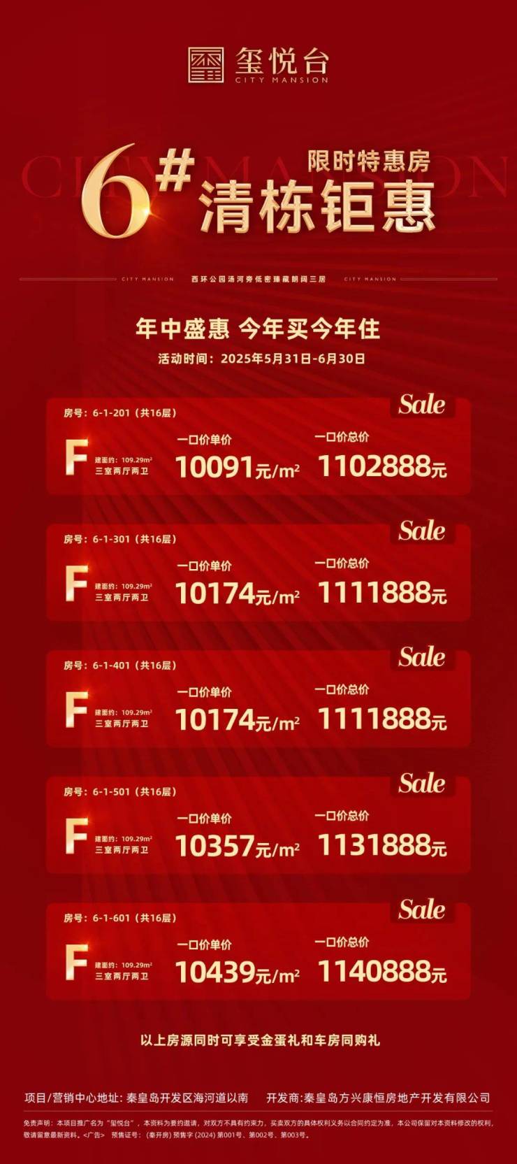 响应国家“保交楼”号召,玺悦台工程进度透明高效,全盘封顶且计划于今年年底交付,以实力兑现承诺。6#楼清栋钜惠,限时一口价特惠房,助力轻松置业!