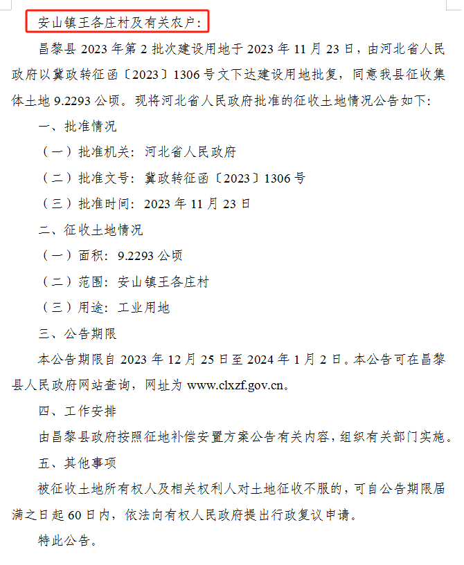二、本方案只适用于先锋路北侧安子寺集体土地征地补偿工作,不适用于其他项目。