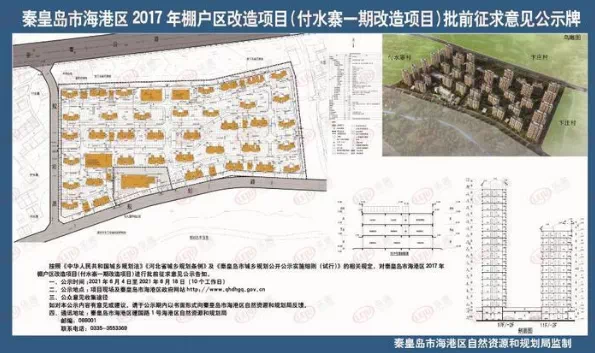 2021年6月4日秦皇岛自然资源规划局网站发布有关于秦皇岛市海港区2017年棚户区改造项目(付水寨一期改造项目)批前征求意见公示牌的信息,占地138.56亩,总建筑面积约23万㎡,38栋17层与11层房源可供黑山窑前村、黑山窑后村、柳江及夏家峪四个村的村民安置,该区域预计可居住6560人/2050户。公示中该区域包含了幼儿园、社区服务站、菜市场、文化活动站、居家养老服务用房等生活配套。