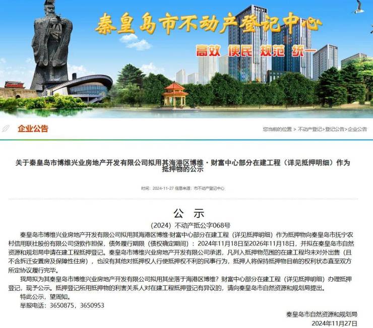 暂未查询到该商业的具体资料,官方媒体公开的近期相关资讯为2024-11-27秦皇岛市不动产登记中心发布的一则抵押公示: