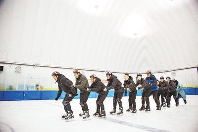 秦皇岛市大力开展体育惠民活动,推动冰雪运动发展。这是市民在秦皇岛市滑冰馆体验滑冰。河北日报记者 师 源摄