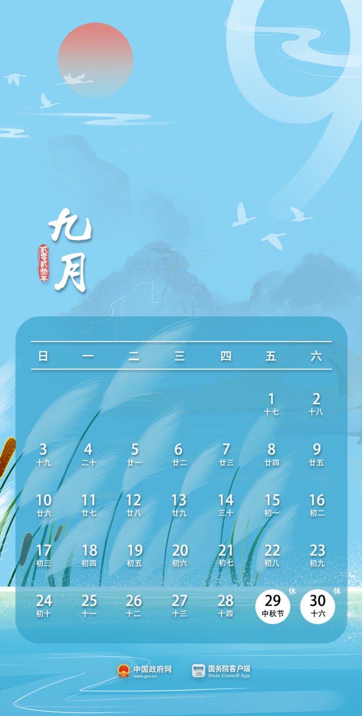 中秋节、国庆节:9月29日至10月6日放假调休,共8天。10月7日(星期六)、10月8日(星期日)上班。