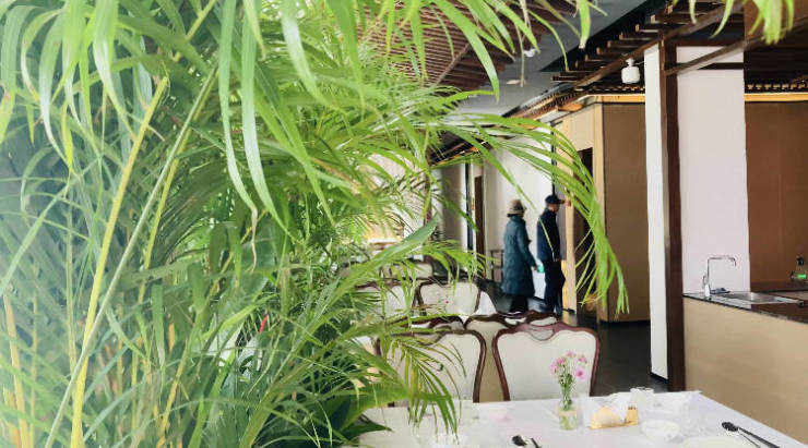 层次分明的草木色绿植与高级质感的白色系桌椅餐具相映成趣,使整体空间明朗清新,同时展现了设计与自然之间的有趣融合。
