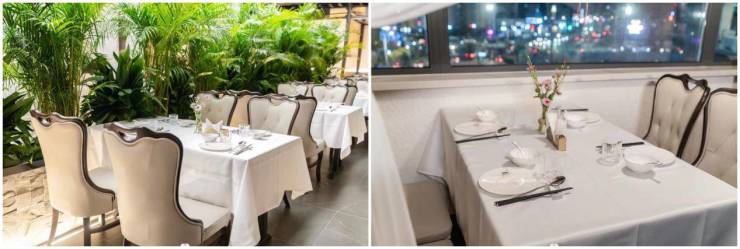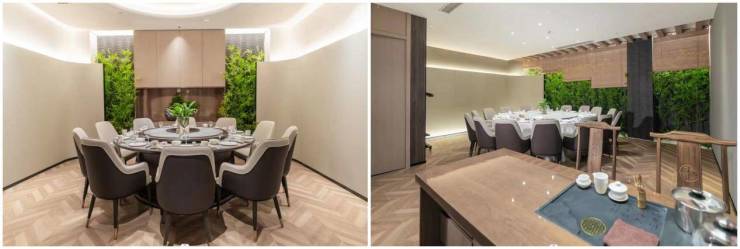 餐厅特别邀请知名设计师团队,以充满艺术张力的空间设计,结合室内造园手法,打造2000㎡绿色景观、城市街景主题用餐空间,内设30㎡以上奢享包间14间,观景卡台20余个。